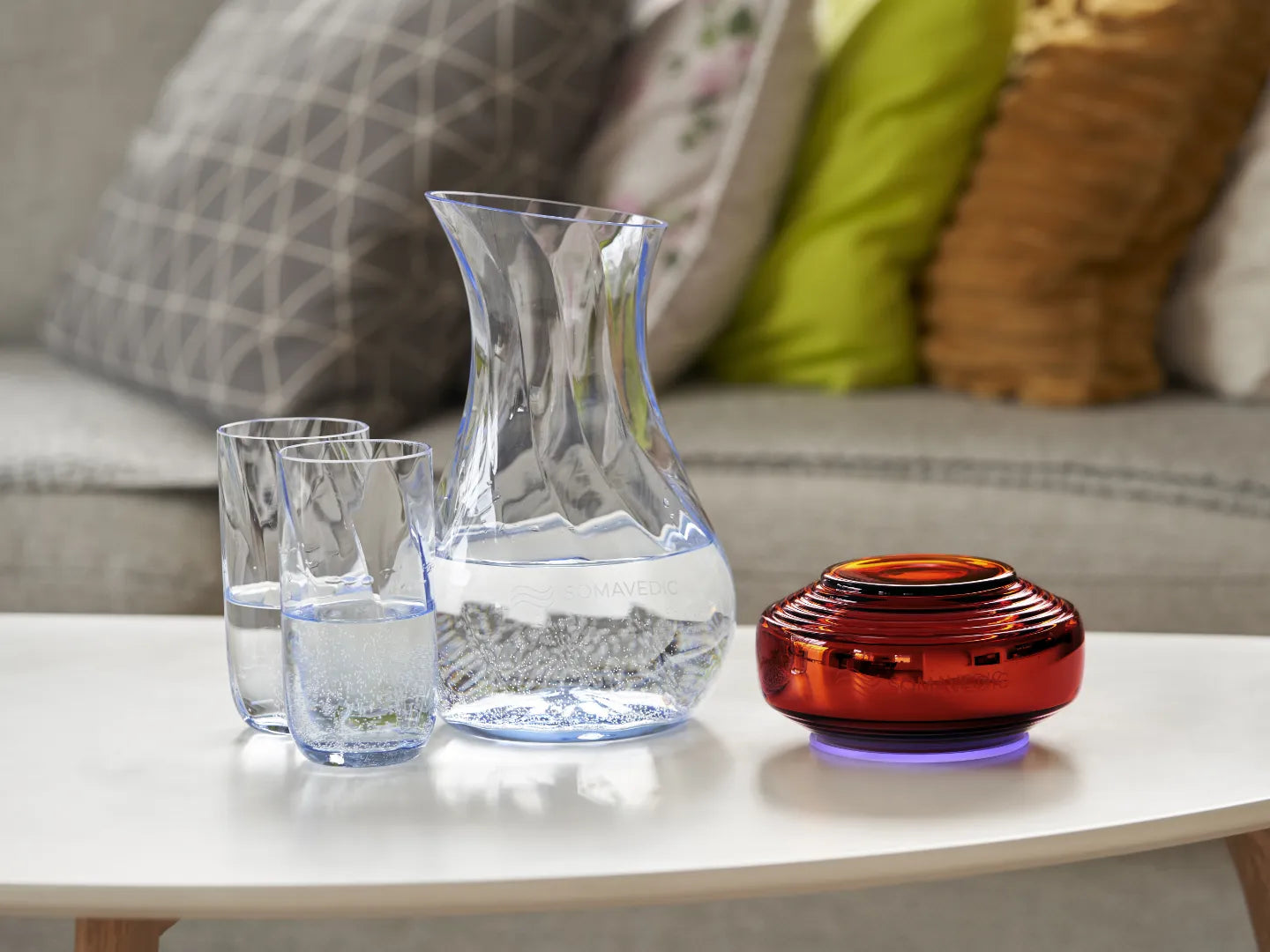 Somavedic Amber puede crear agua armonizada y estructurada, y ayudarte a aumentar tu capacidad de hidratación. Para obtener la máxima absorción con el agua estructurada, simplemente colócala cerca de su Somavedic, idealmente a no más de 20 cm de distancia. El agua se reestructurará al 100 % en un plazo de 10 a 15 minutos. Con Amber podrás disfrutar de un agua de calidad de manantial sin riesgo alguno.